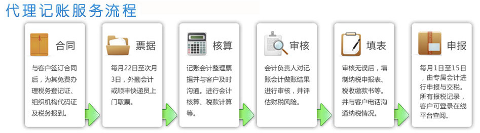 代理記帳服務方式分客戶送達和上門服務二種,其中:客戶送達是客戶將準備的原始資料和票據送到鎮(zhèn)江華德天誠財務咨詢有限公司或由我公司人員去客戶處取資料,由我公司進行記帳、報稅工作。